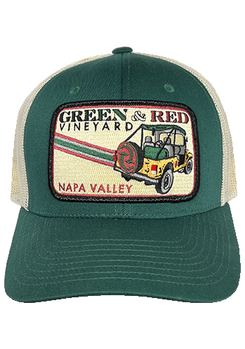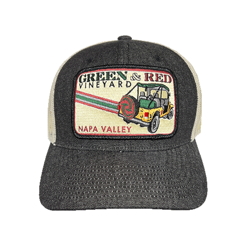 Solid front with breathable mesh around the sides and back. Patch features our trusty Mahindra Roxor Jeep. Custom made by our friends at Bart Bridge!